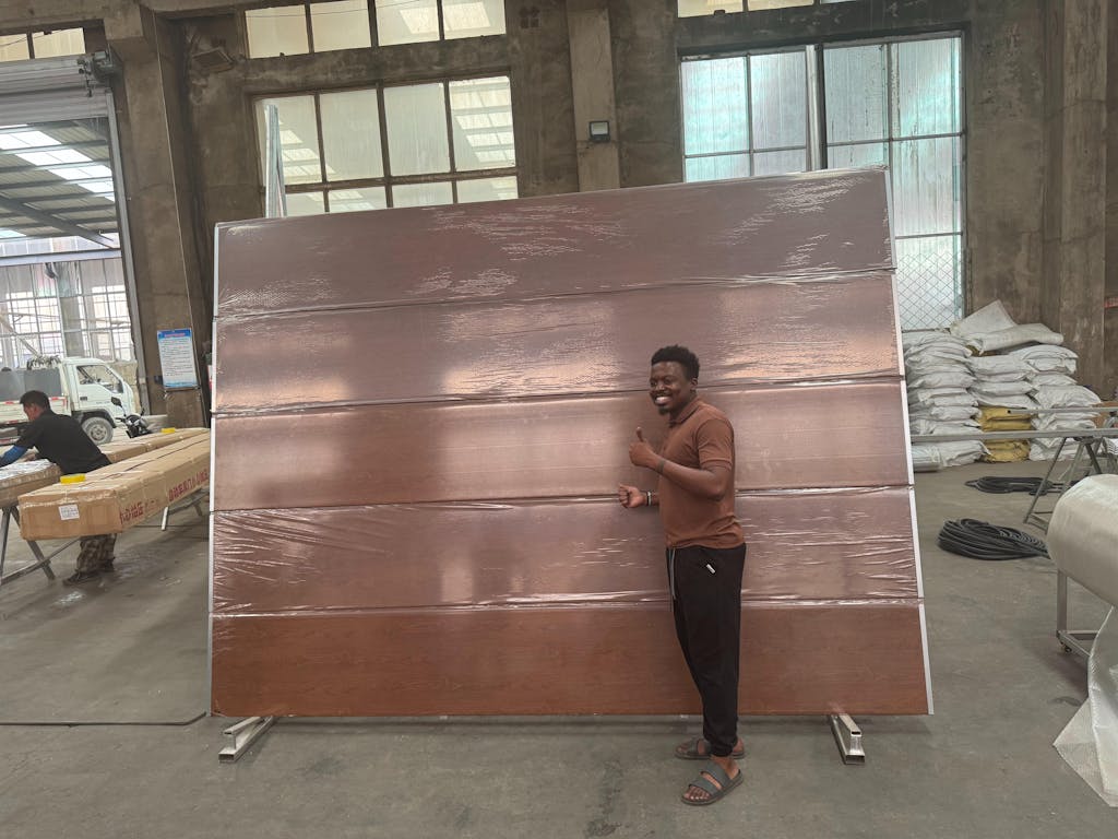 I visited the factory to check the quality of the garage door especially in wooden color.
